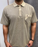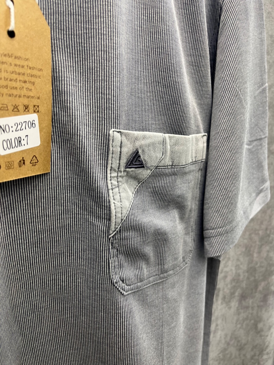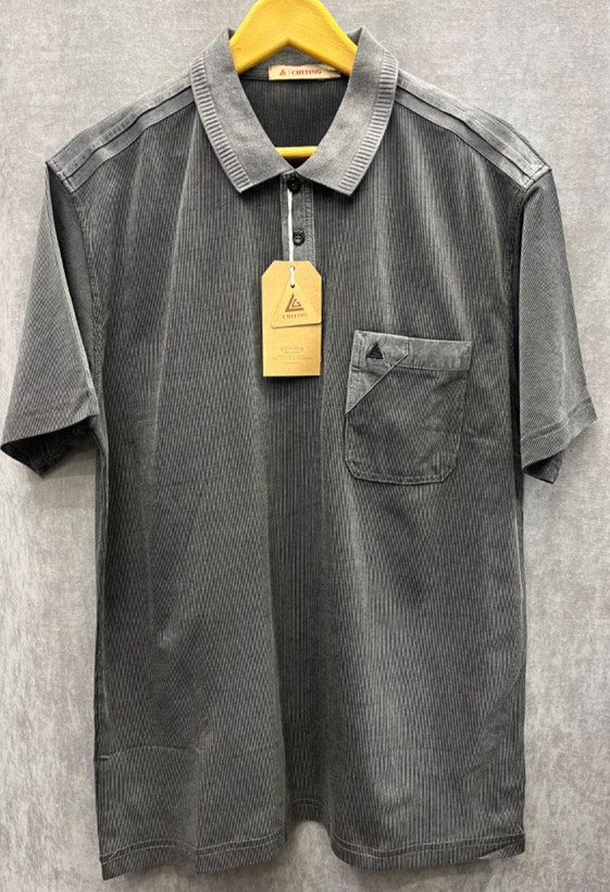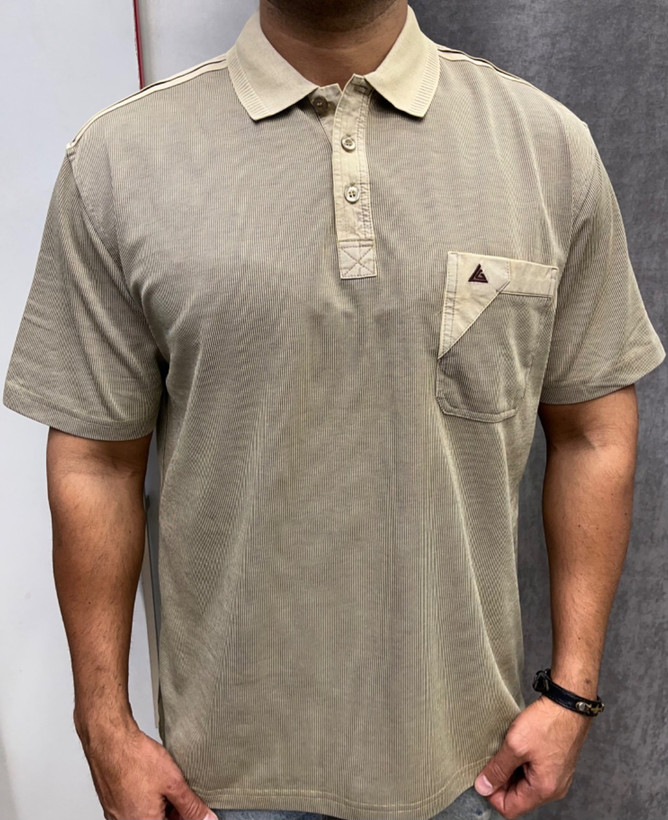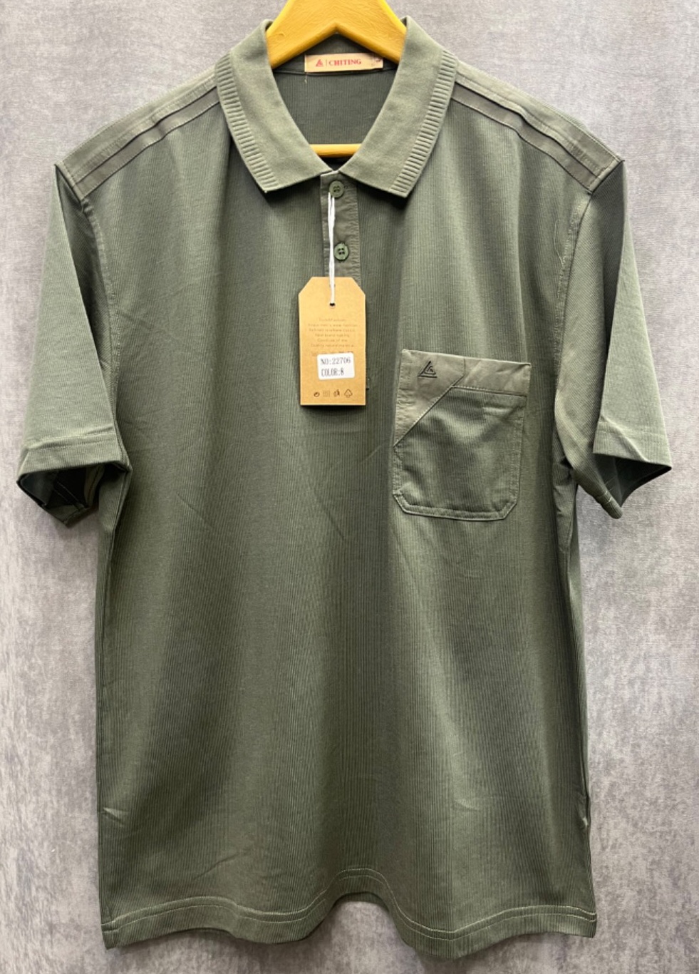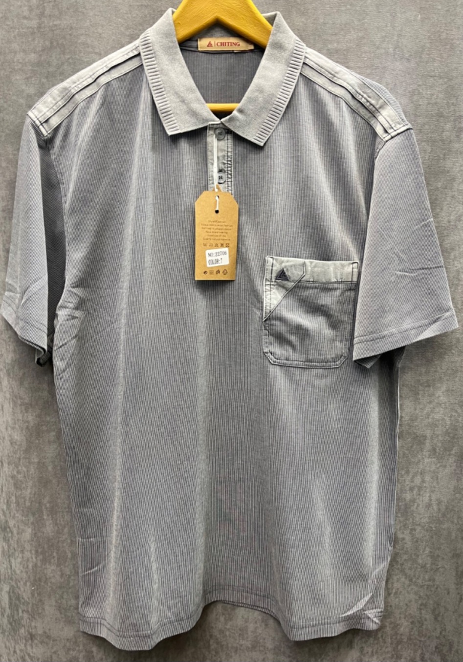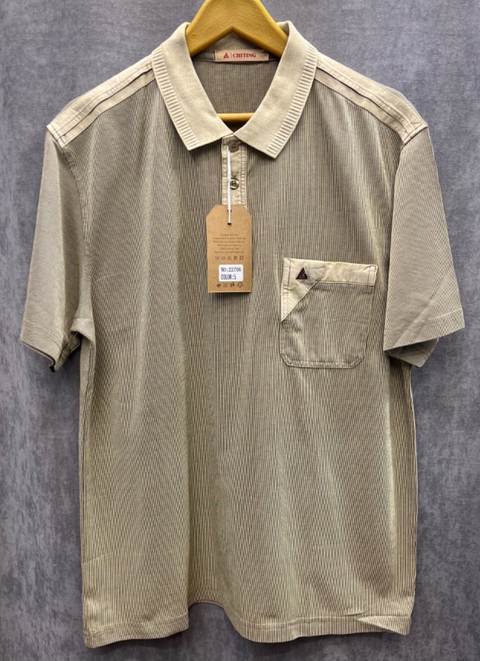 فرم لباس: طراحی مدرن و کلاسیک: تلفیق بینقص یقه پولو کلاسیک با جزئیات مدرن، از جمله پارچه میله ای و جیب پاکتی کاربردی، ظاهری چشمنواز و بهروز را خلق کرده است.