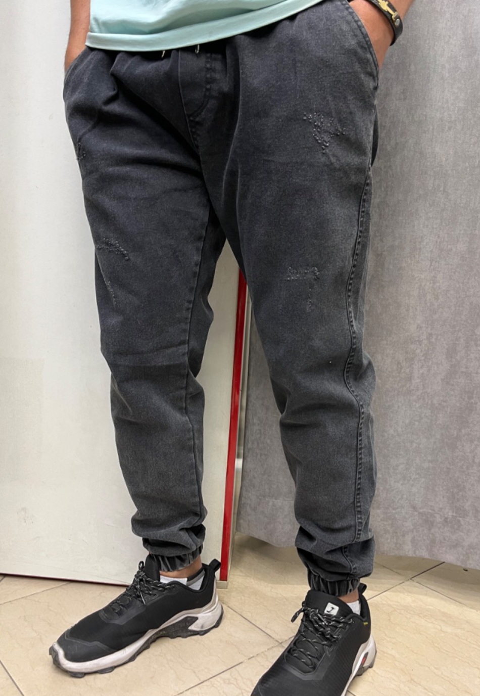 شلوار جاگر جین با طراحی کمر و دمپا کشی، انتخابی ایدهآل برای افرادی است که بهدنبال راحتی، استایل اسپرت و فیت آزاد هستند.