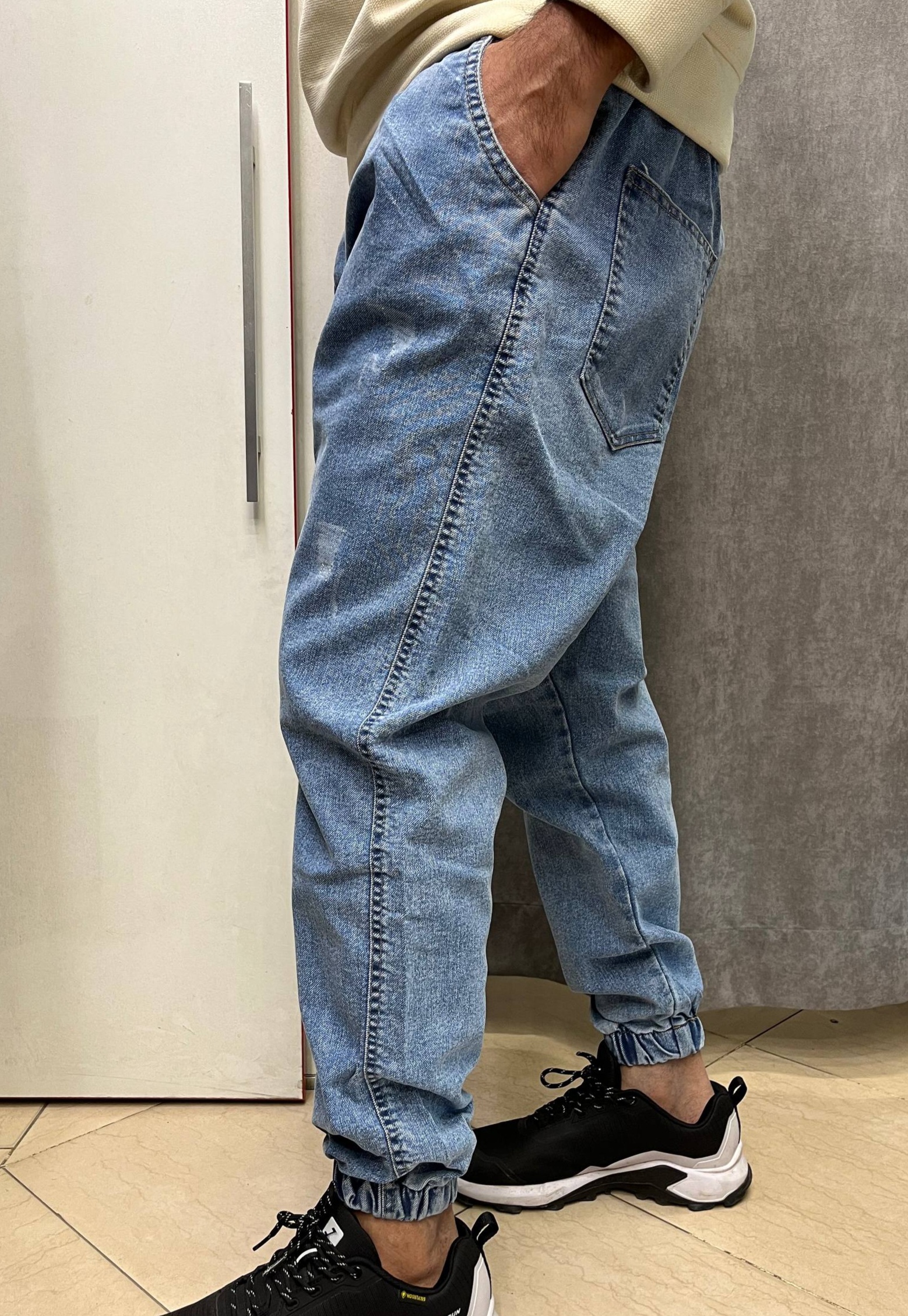 شلوار جاگر پارچه جین | کمر و دمپا کش/ذغالی/آبی