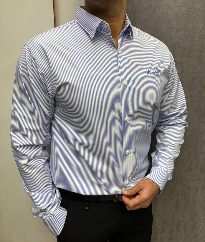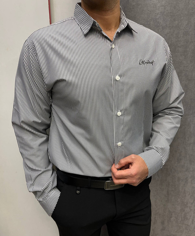 پیراهن آستین بلند راهراه دیپلمات انتخابی شیک و همیشهمد روز برای آقایانیست که به استایل کلاسیک، رسمی و منظم اهمیت میدهند. طراحی راهراه عمودی باعث کشیدهتر دیده شدن اندام شده و جلوهای حرفهای به استایل شما میبخشد.